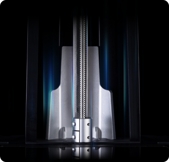 El eje z, equipado con un sistema de tuerca anti-retroceso y un único riel lineal, se mueve con oscilaciones significativamente reducidas, dando a sus impresiones una superficie suave como la seda.