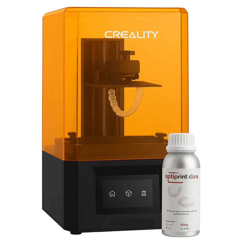 - Resina fotopolimerizable transparente y flexible, especialmente diseñada para la impresión 3D de férulas oclusales.