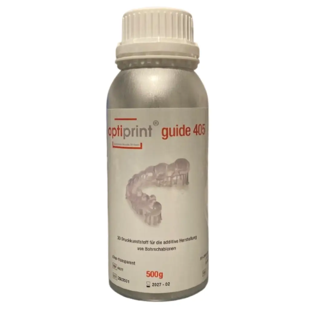 La Optiprint Guide es una resina fotopolimerizable de alta calidad, diseñada específicamente para la fabricación de guías quirúrgicas implantológicas mediante impresión 3D. Su fórmula avanzada garantiza estabilidad dimensional y resistencia mecánica, asegurando resultados precisos en procedimientos odontológicos.